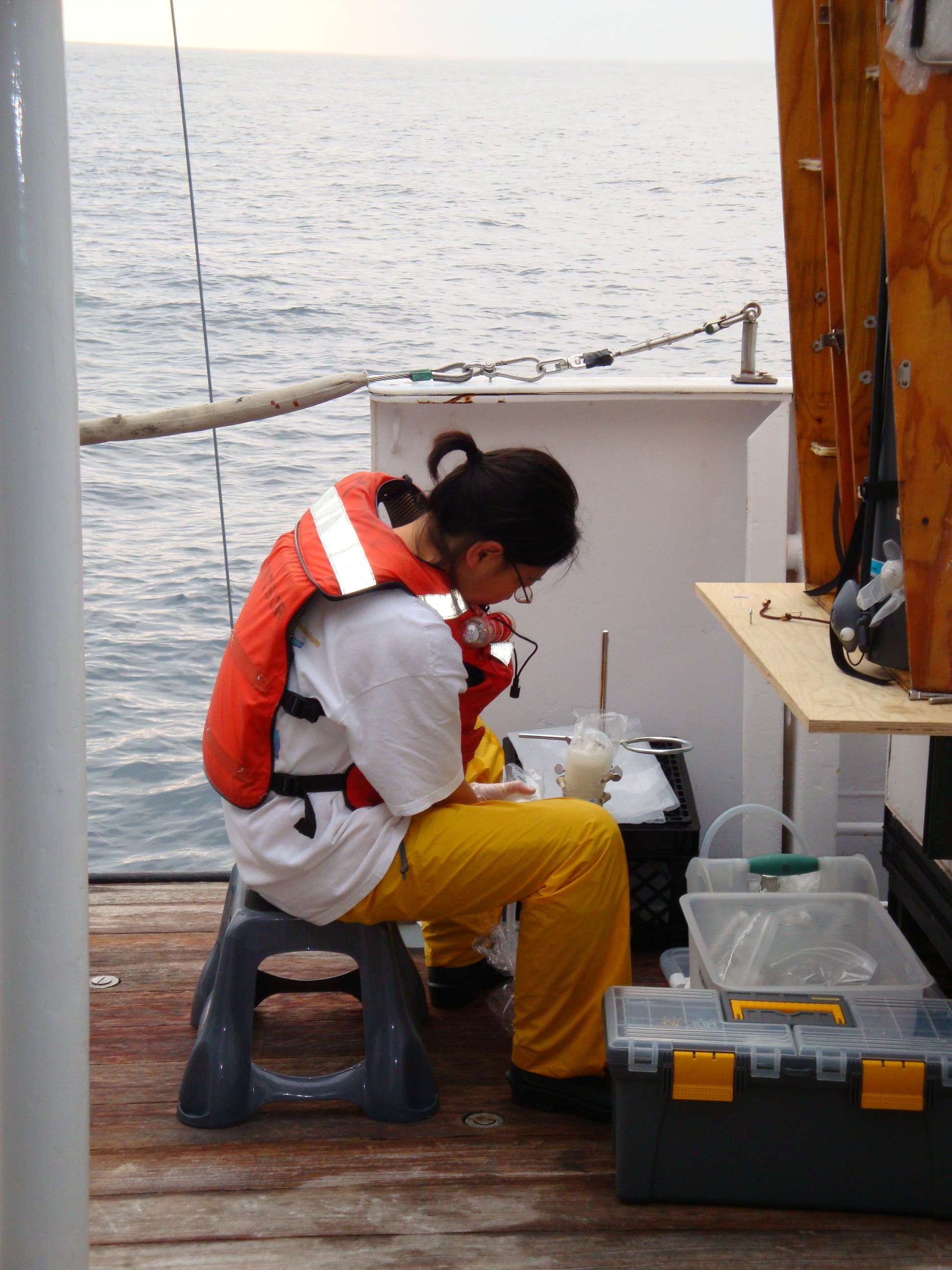 Ground water sampling in the Pettasquamscutt River, Rhode Island