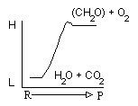 The process of photosynthesis enables plant cells to transform light energy into chemical energy in the form of carbohydrate molecules. Plants use the light energy to produce high- energy molecular arrangements. Here is the reactant/product formula for this reaction and the energy diagram of the process: