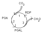 ] In this second reaction of carbon dioxide fixation, PGA acquires hydrogen from NADPH2 to become PGAL. The process regenerates NADP, a substance you already met in the light reactions. You should remember that NADP acquired hydrogen atoms to become NADPH2 the carrier molecule, during the process of (click one): Consider the "life cycle" of NADP in the process of photosynthesis. It is (click one):