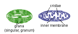 cristae, while the inner membrane of the chloroplasts forms stacks called