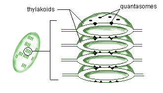 (-somes) within chloroplasts that use light quanta to make ATP are