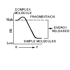 Sometimes an energy-releasing reaction involves the breaking of a molecule into simpler and more stable product-molecules. Which of the following chemical reactions is the general reactant/product expression for the fragmentation process? (Click one.)