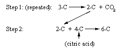 carbon oxaloacaetic acid (OAA) to form a citric acid molecule.