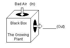 ![]() Information about the functioning of plants began to unfold in 1772 with the observations of Joseph Priestley. Priestley knew that a mouse placed in an enclosed glass jar would die after a period of time. A mouse placed in a jar with air left from the burning of a candle died much more quickly. According to Priestley, the burning candle made the air in the jar "stale." Using growing plants, Priestley discovered how to improve the air in the jar. He found that mice lived a longer time when placed in a container with a growing plant. The plant "restored" the stale air and replaced it with fresh air. Here is his report: "I have been so happy as by accident to hit upon a method of restoring air which has been injured by the burning of candles and to have discovered at least one of the restoratives which Nature employs for this purpose. It is vegetation."Priestley made his discovery by (click one): If we think of the plant as a closed box system, Priestley "shook the box" to find out something about what happens inside the box. We can illustrate Priestley's findings.