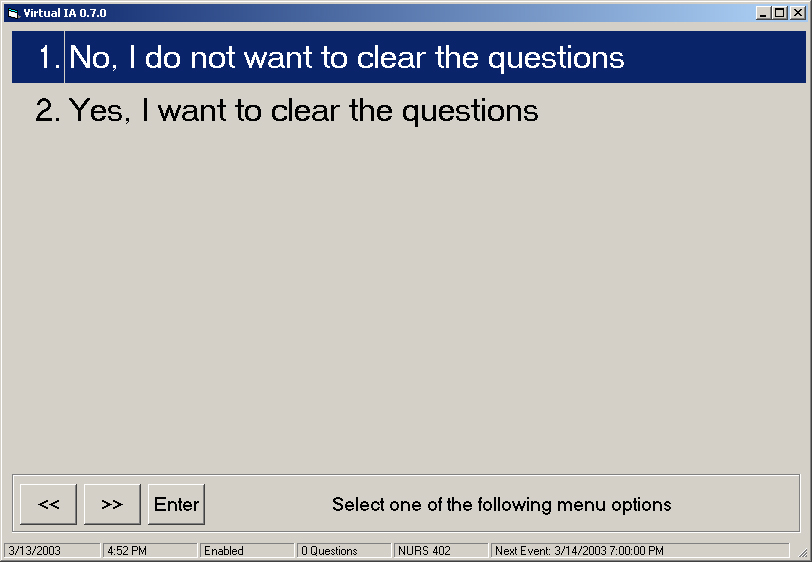 Because clearing the questions is permanent, you must confirm your selection.