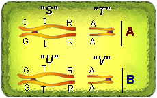 In the figure above chromosomes "S" and "U" have the same gene sequence.