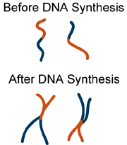 during G2 stage after DNA synthesis. The lower figure shows the homologous