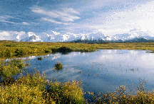 many lakes, ponds, and bogs in the depressions between the rolling plains.